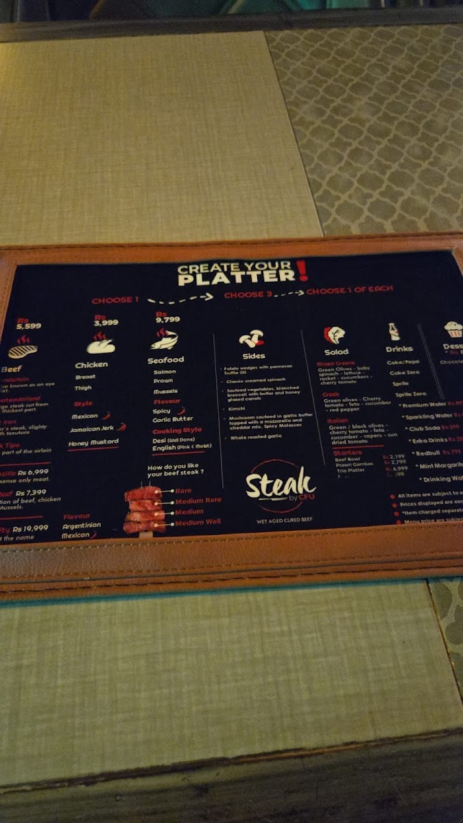 Welcome to Steak by CFU, a hidden gem nestled within the M13 Emirates Building in F-7 Markaz, Islamabad. If you're on the hunt for an authentic steak experience, this is the place to be. The ambiance immediately sets the tone: cozy and inviting, with soft lighting that creates a relaxed dining atmosphere, perfect for a quiet evening with loved ones.